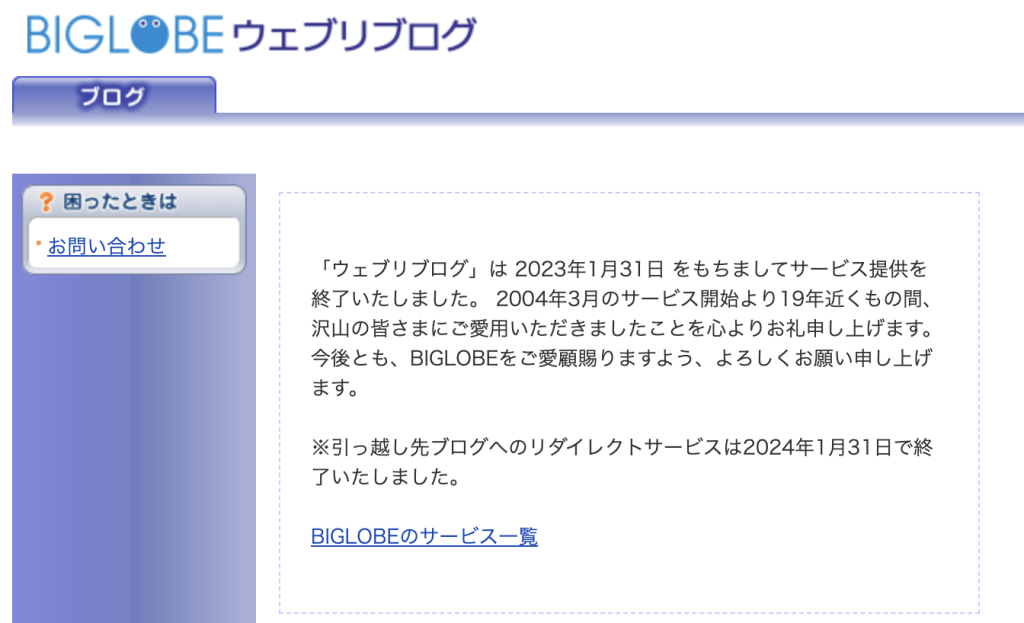 そもそもBIGLOBEのブログなんてあったのかと、すっかり忘れていてビックリ。