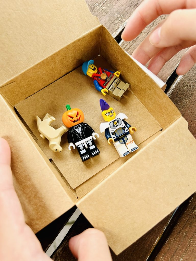 お店に居られず、作ったレゴくんたちはハルカに預けてお店の外へ。