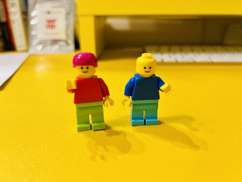 レゴ人形のアオくん、アカくんのお家を作っている。
