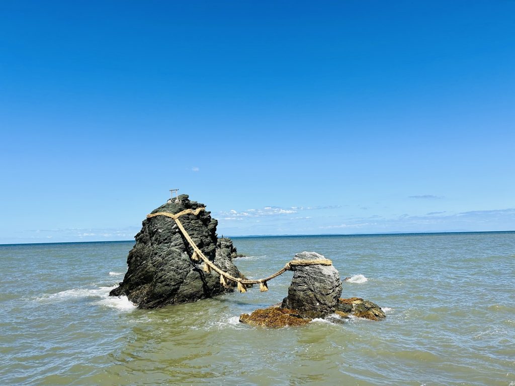 となりの夫婦岩にも寄ってみたら、なんだかカエル推し。