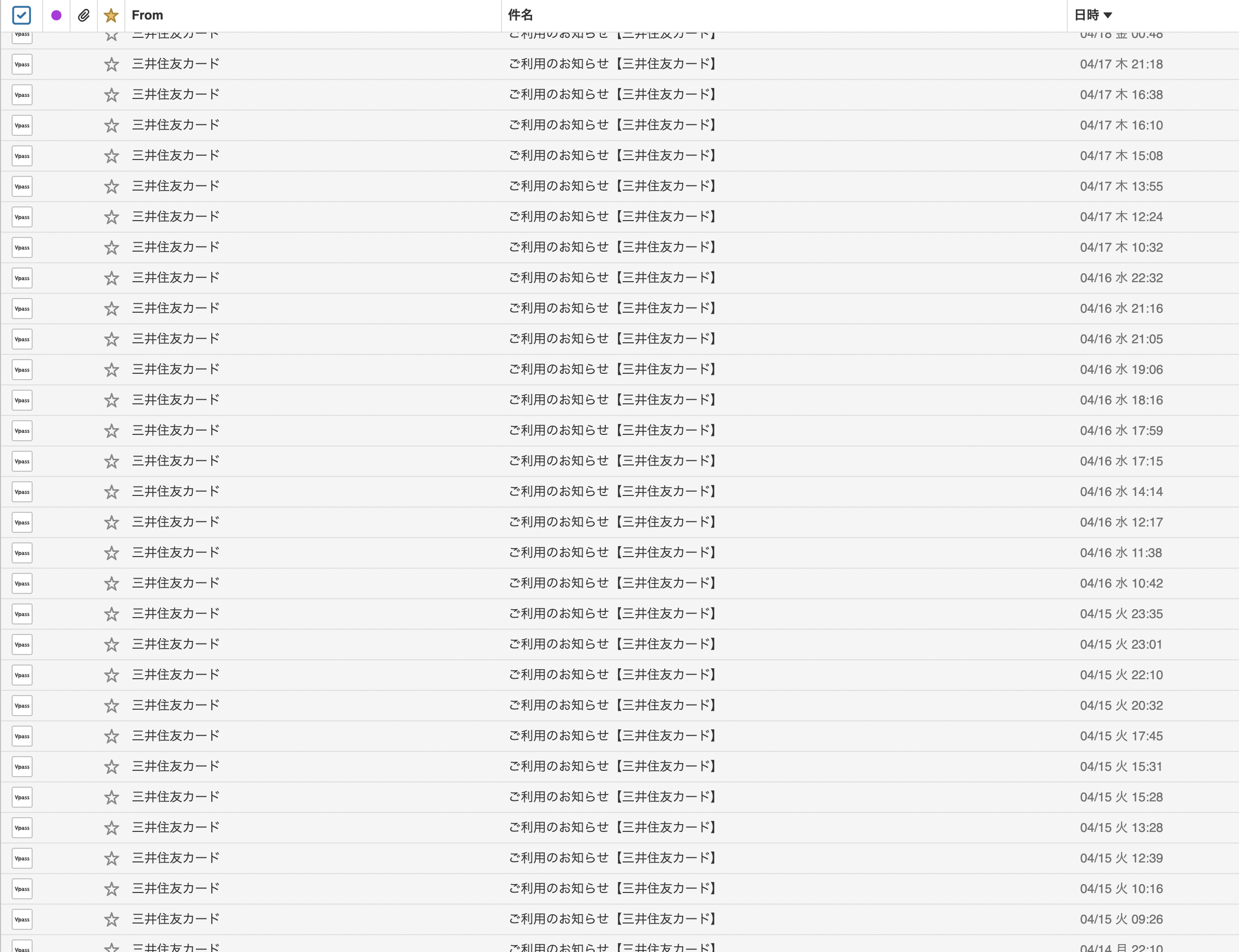 なのでメールBOXがこんな感じになります。