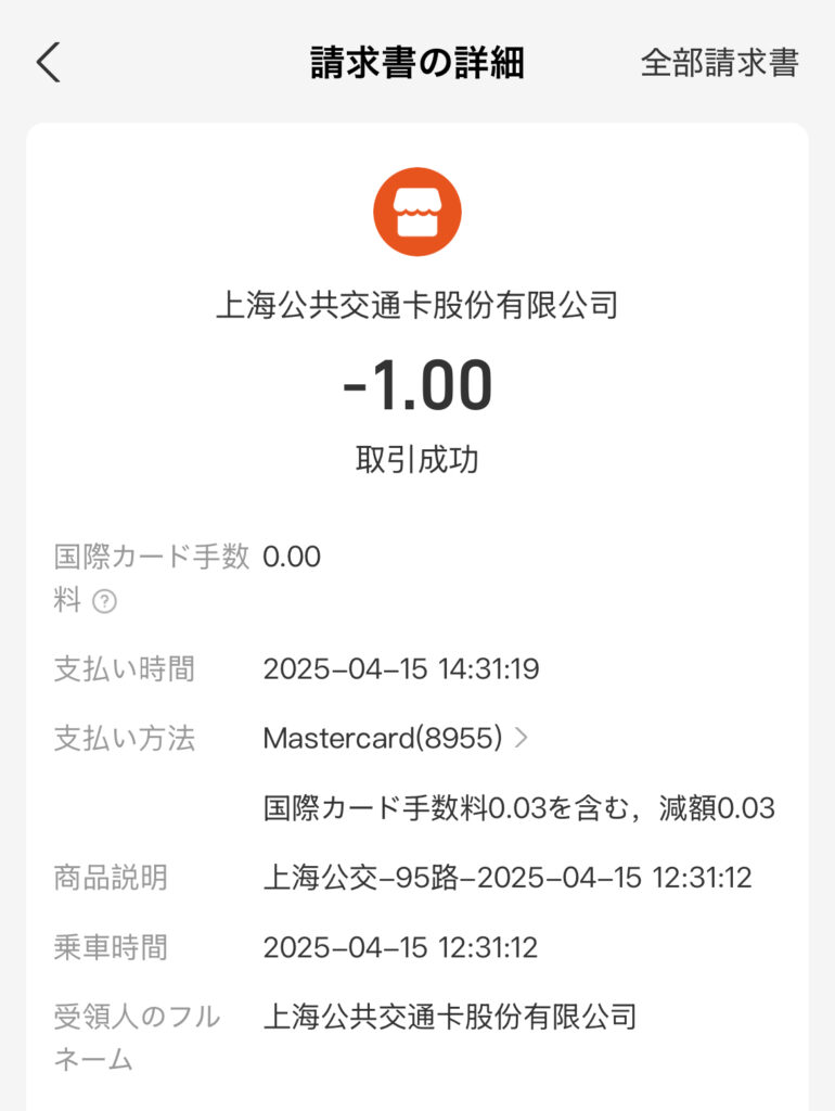 アリペイの方は、公共交通機関なんて詳細にどこから何時に乗ったかまで記載されておる